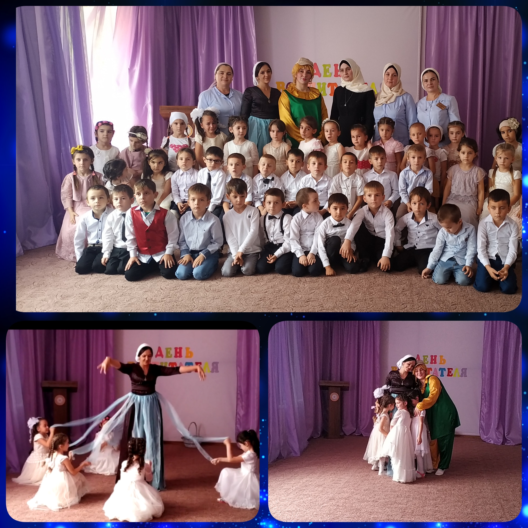 Сегодня в нашем саду провели мероприятие посвященное Дню воспитателя и всех дошкольных работников. Дети приготовили стихи, пели песни.Но особенно оживил праздник приход клоунессы Ириски. С праздником вас!