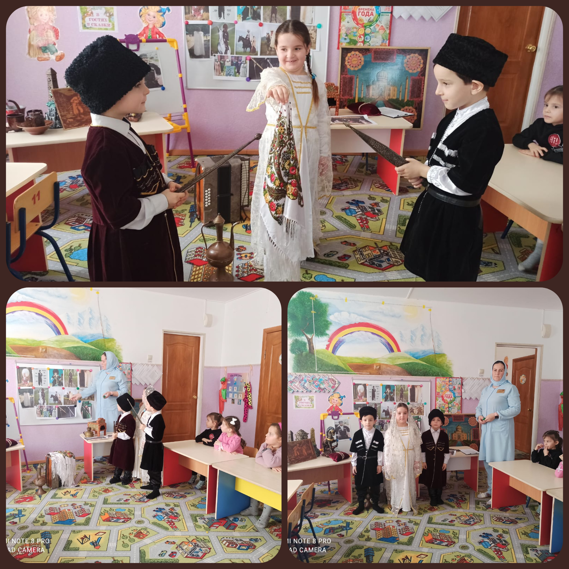 Воспитатель - Хажмирзаева Лариса с детьми средней группы "Капелька" провела открытый просмотр на чеченском языке по теме:"Нохчийн кьоман музей а, духар а довзийтар".