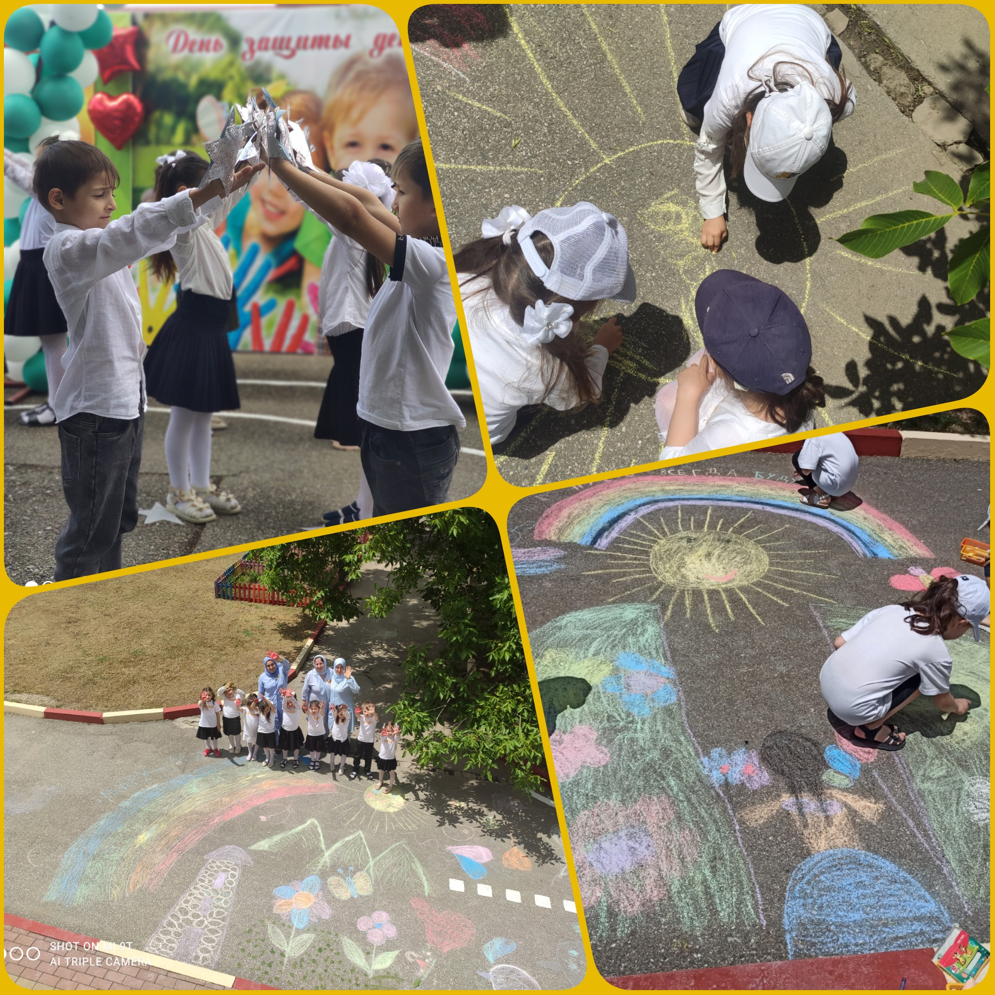 01.06.2023Рисование на асфальте - это не только весёлое занятие, но и также творчество и познание детьми окружающего мира. Рисовать цветными мелками да ещё не на бумаге, а на асфальте - это счастье для наших художников. В этот солнечный день оказалась целая территория, на которой можно было дать полную волю своему воображению. Участники конкурса изображали цветы, солнце, радугу, горы... Работы получились очень яркие и позитивные.