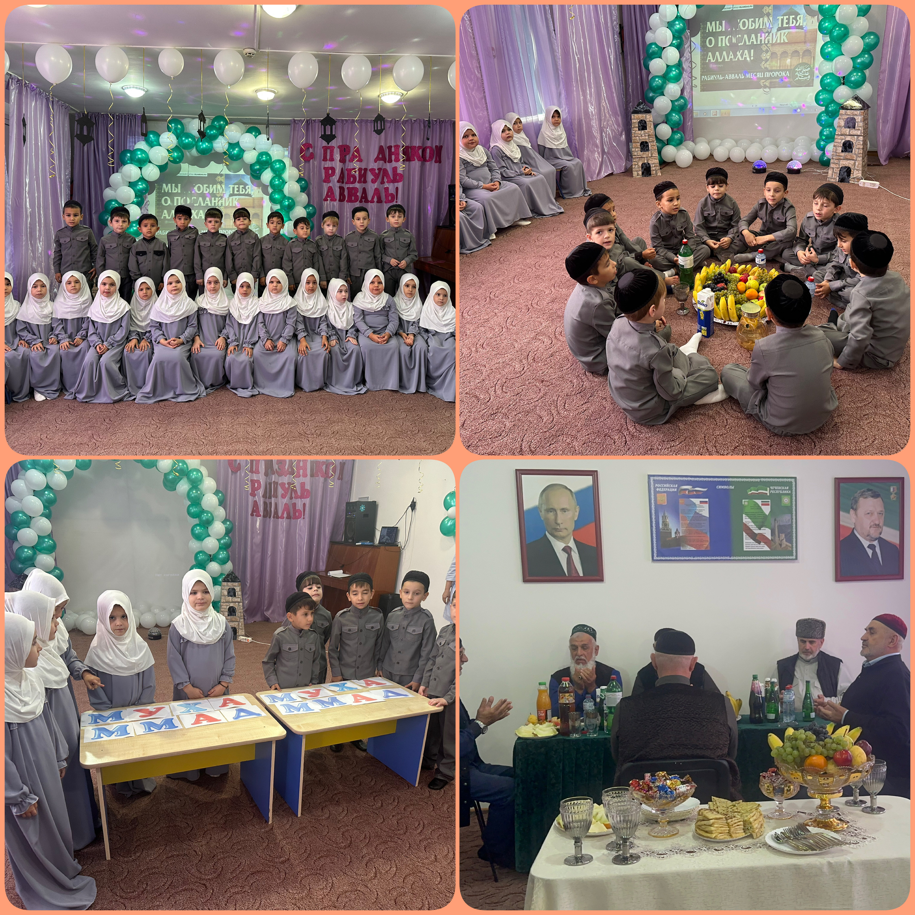10.10.2023В соответствии с планом работы МБДОУ "Детский сад № 2 "Солнышко", в целях нравственного воспитания дошкольников и привития им любви к последнему из Пророков-Мухаммаду (с.а.в.), было организовано мероприятие с воспитанниками старшей группы. Дети показали свои познания в исламе. Мероприятие прошло на высшем уровне, были приглашены представители духовенства Гудермесского района. Мероприятие завершили чтением мовлида.