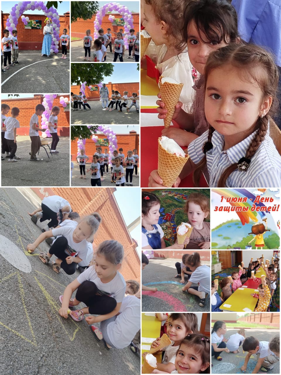 С детьми проводился досуг,проводился конкурс между группами "Рисунки на асфальте"и по завершении мероприятия детям раздавали мороженное.