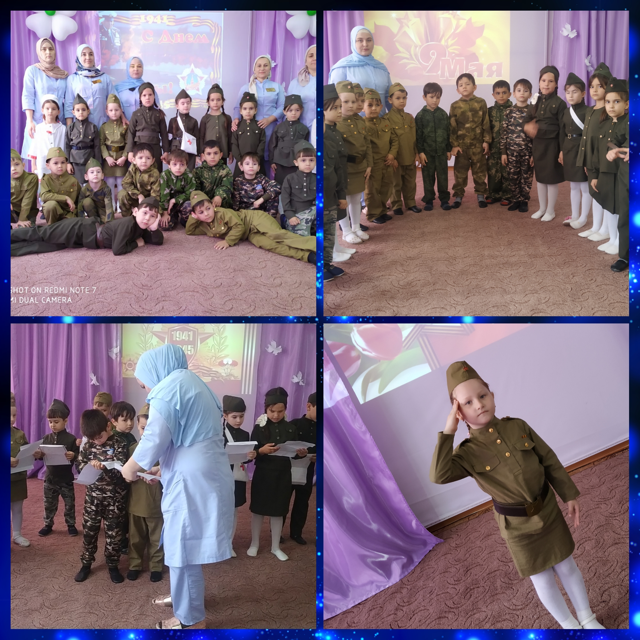 Сегодня в МБДОУ "Детский сад № 2 "Солнышко" инструктор по физической культуре Олсункаева Х. А-Х провела спортивно-музыкальный праздник посвященный Дню Победы.